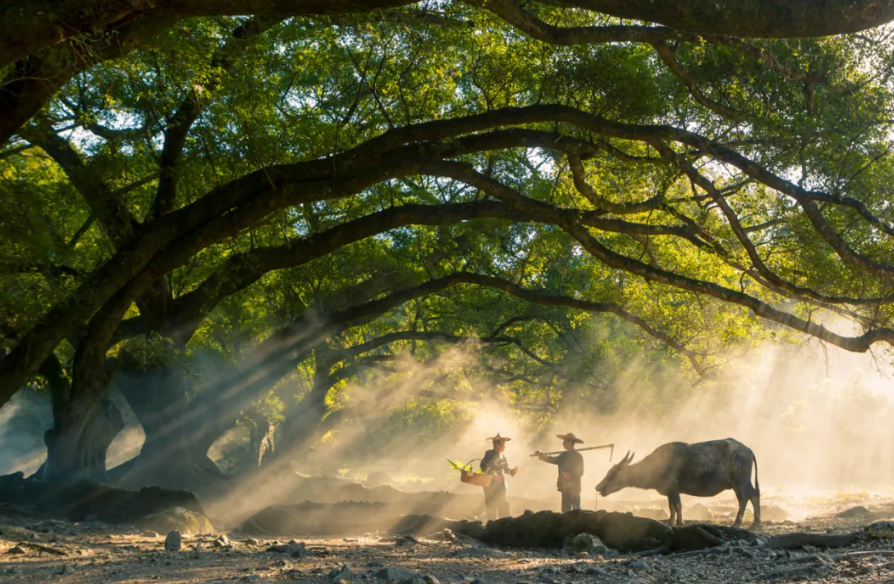 杨家溪景色优美的杨家溪,保留着上百年的古榕树群,在榕枫公园枝繁叶茂的老榕树下,老汉牵牛缓缓走过,还有农家大姐赶着鹅在树下走过,阳光透过树荫洒下来,晨雾弥漫,勾勒出一幅醉人的画卷,拍照绝美!