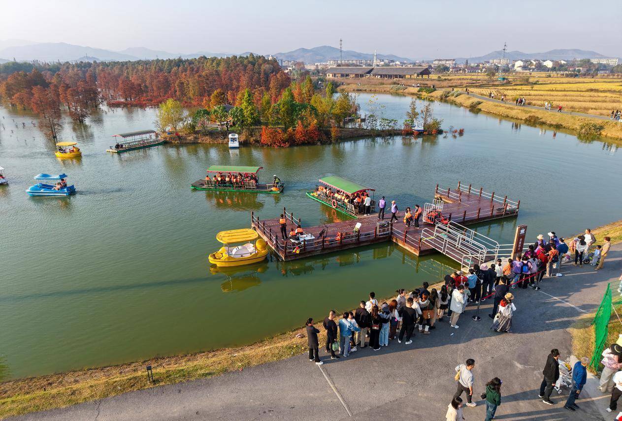 11月16日,安徽省合肥市庐江县柯坦镇大汉塘近万株池杉,褪去绿装,换上了最为浓烈的“红妆”,吸引了众多游客前来打卡留念。